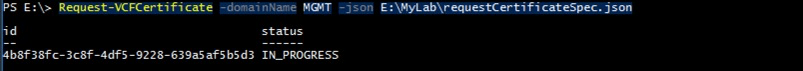 Request-VCFCertificate -domainName MGMT -json E:\MyLab\requestCertificateSpec.json