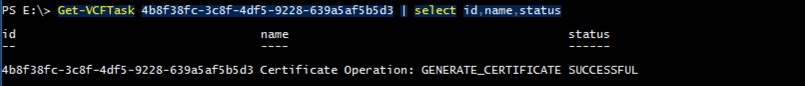 Here we can see a task is named Certificate Operation: GENERATE_CERTIFICATE and it has a status of SUCCESSFUL. So there you have it we have successfully generated the signed certificates using PowerVCF.