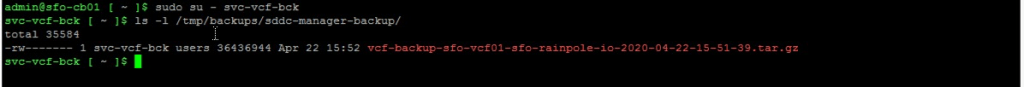 4. Locate the backup file from the external backup server. This will be located in the /tmp/backups/sddc-manager-backup folder.