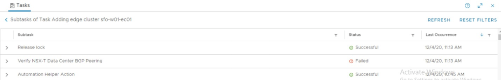 Step 1 – In the SDDC Manager UI, navigate to the Task list and click the failed task to see the sub-tasks.
