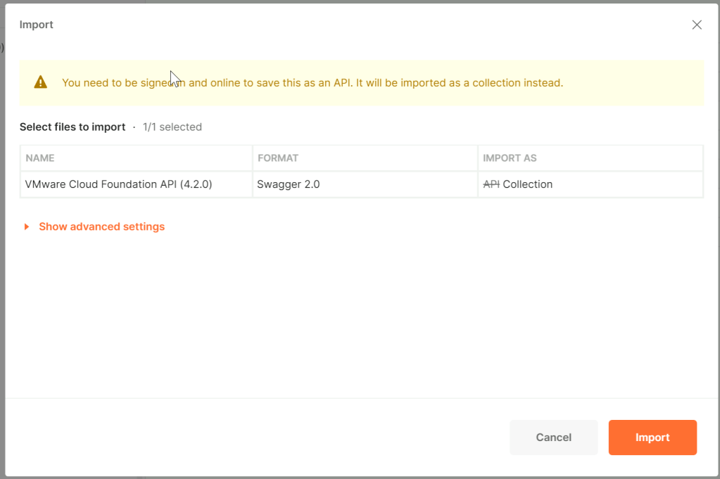 Create VMware Cloud Foundation API Collection in Postman