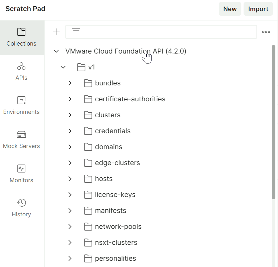 - Once the import finishes you will have a collection of all the VMware Cloud Foundation Public APIs.